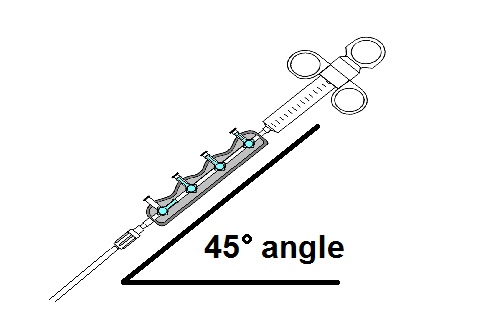 The manual manifold can look intimidating at first, but becomes second nature afer sufficient experience. Keeping a tight system free of air is important to handling the manual manifold. IMPORTANT - When you inject flush or contrast with the manual manifold, you must have the syringe lifted upward in a 45 degree angle to allow any bubbles to float to the top to prevent adminstration of air into the catheter and patient. Air embolism into the coronary artery can result in asystole.