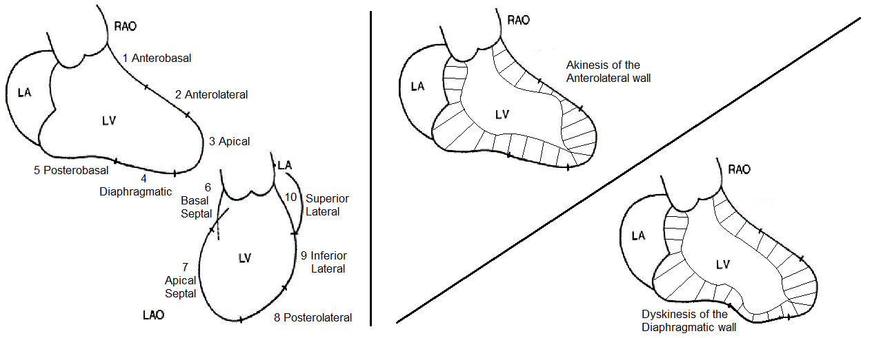 A point system is used to produce a wall motion score that reflects overall LV function. Points are assigned as follows: