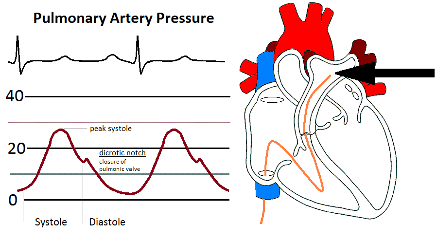 The PA is recorded as: peak systole/end diastole/mean.